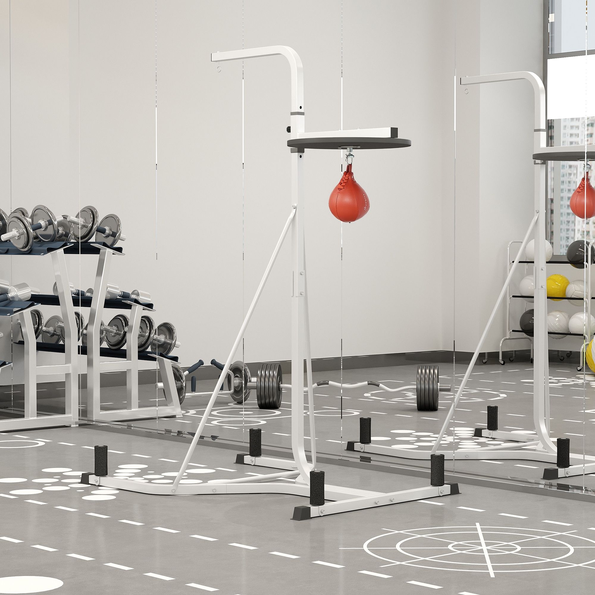 - - Features a speed bag and boxing punching platform